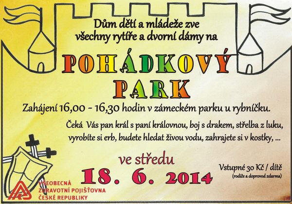 Ve středu 18.6.2014 od 16 - 16,30 hodin u rybníčku v zámeckém parku v Letovicích. Přivítá Vás pan král s paní královnou, vyzkoušíte si střelbu z luku, vyrobíte si svůj erb či vlajku, budete hledat živou vodu, dozvíte se něco z historie zámku. V pohádkovém parku potkáte draka, zahrajeme si kostky, budete chytat kroužky, zúčastníte se rytířského souboje, překonáte pavučinu a čeká vás překvapení. Vstupné 30 Kč / dítě