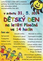 Dům dětí a mládeže a Letecký klub Letovice pořádají v sobotu 31. 5. 2014 na letišti Písečná Den dětí. Čeká nás: sprejovaná, trampolína, skákací hrad, výtvarná dílna, závodní a překážková dráha, orientační závod, malování na obličej, vystoupení kroužků při DDM, ukázka techniky leteckého klubu, ukázka hasičského záchranného sboru, ukázka výcviku psů, letové ukázky modelů letadel a raket. .....